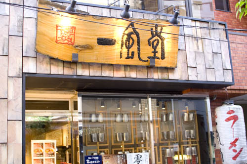 A branch of the famous Hakata ramen chain, featuring thin, slightly chewy noodles in a pork-based broth ("red" or "white"), with or without extra chashu. You can add your own freshly grated garlic.