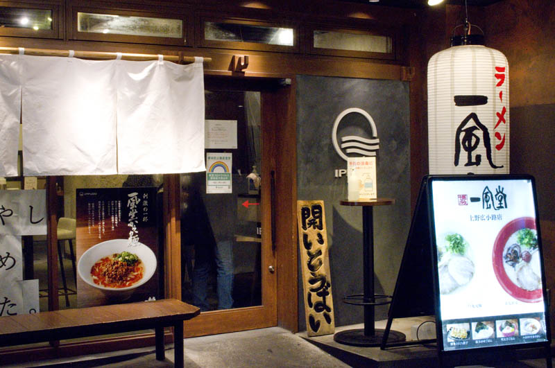 A branch of the famous Hakata ramen chain, featuring thin, slightly chewy noodles in a pork-based broth ("red" or "white"), with or without extra chashu. You can add your own freshly grated garlic.