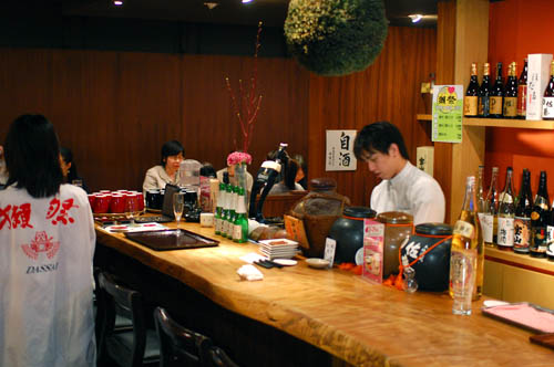 The attractive basement space includes a cozy counter area with tables off to one side, plus a number of private dining rooms. The sake list offers some forty varieties from small kura around the country, plus an assortment of plum, peach and yuzu liqueurs. Budget around Y5000-6000 for dinner and drinks.