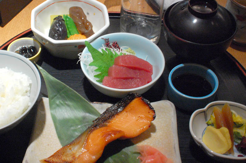 Broiled sablefish (gindara), marinated in sake lees, is the unusual specialty of this popular Nagoya-based shop. You can order it as a simple teishoku meal, with soup, pickles and rice, or as part of a larger set menu with side dishes like sashimi, chawan mushi and seasonal vegetable dishes. Prices are surprisingly inexpensive.