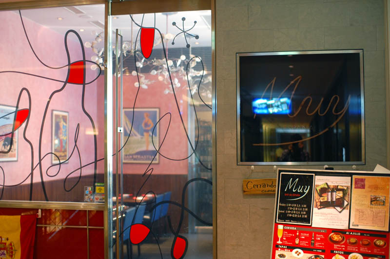 Muy's dramatically lit, 16-meter-long bar makes an impressive centerpiece to the stylish interior. The menu features a good selection of tapas (including imported Spanish hams), grilled meats, and paella variations. Spanish wines start at under Y5,000 per bottle; budget around Y5,000 for food and drink at dinnertime.