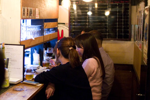 Good craft beers at very reasonable prices - that's the chief selling point for this cozy, unpretentious beer bar. Ten Japanese craft brews are served on tap, all priced at just Y690 for a large size (410 ml) and Y390 for a regular size (Y230 ml). The pizzas are also surprisingly good, and similarly cheap, starting at around Y780.