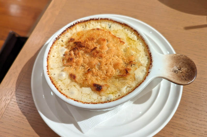 The American diner classic Mac 'n' Cheese is made here with gruyere, studded with bits of bacon and topped with a crunchy layer of parmesan. It's relatively mild in flavor but well balanced, and it pairs well with a side of baby leaf salad. A supplementary order of bacon would also not go amiss.