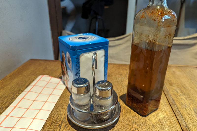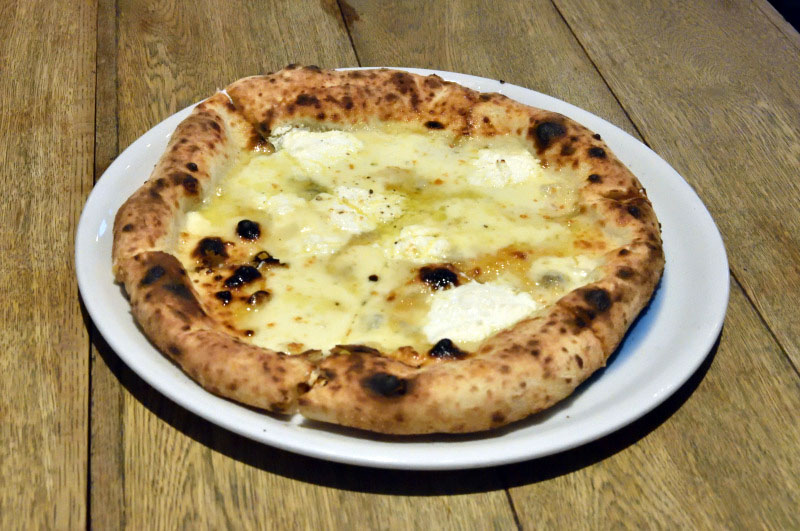 At lunchtime you can choose from six different pizzas (including one weekly special), and a couple of grilled panini sandwiches. The Quattro Formaggi is suitably cheesy, with the various cheese components unevenly distributed over the surface so that each slice is a little different in flavor. Chili oil is available to further perk things up. Lunch also includes a starter course - either a trio of deep-fried delicacies or a vegetable soup - plus a mini dessert.