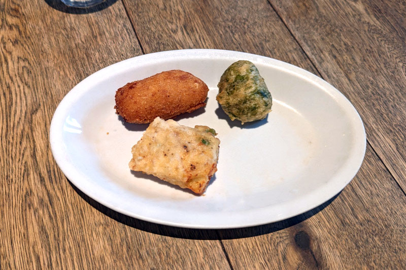 In the evenings there's a more extensive selection of starters - fresh burrata, potato-zucchini fritters, Baccala Fritto (salted cod), and charcuterie boards of cured meats. Pizza choices widen to cover twelve red pizzas (including calzone) and eleven white pizzas.