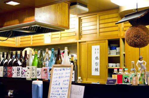 Nearly thirty well-chosen craft sake from relatively obscure small breweries are on offer at this cozy neighborhood drinking spot. There are also sake-friendly nibbles like grilled dried fish and cured meats - the smoked cheese, fish and meat platter is especialy recommended. Budget around Y3000 for food and drink.