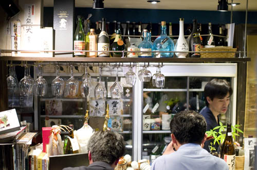 Seating is at small horikotatsu or at the small counter; there's also one window booth, where smoking is allowed. The elevator opens onto Tokyo's tiniest genkan, where you're meant to take off your shoes, so large groups might take awhile to enter and exit. Budget around Y2500-3500 for a few rounds of sake and snacks, more for a full evening.