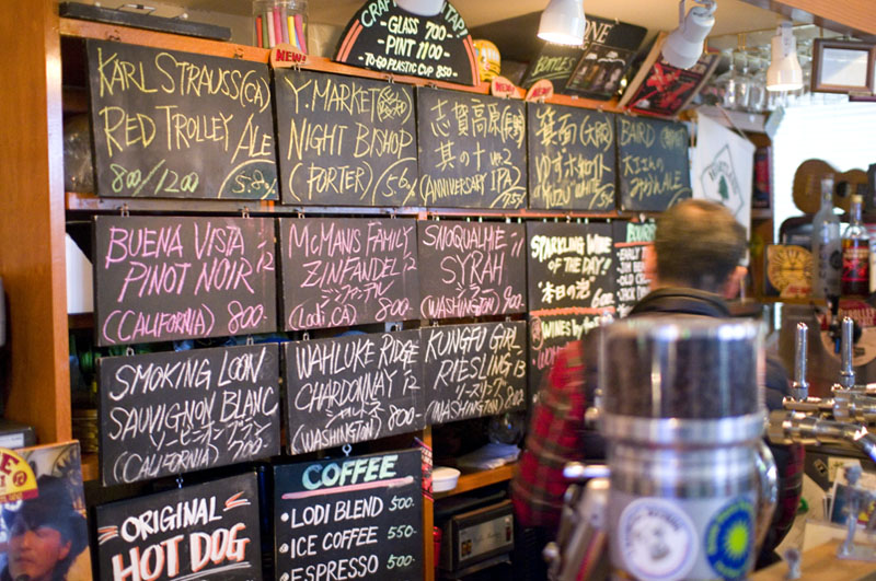Located above Nakano-Sakaue subway station, Lodi serves both domestic microbrew beers (with a rotating selection of five on tap), and American wines (with six by the glass). At lunchtime (weekdays only) they serve gourmet coffee.