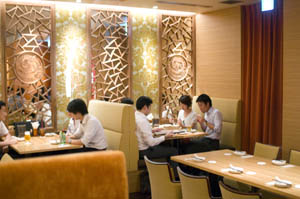 The showpiece at this dim sum specialist is a colorful platter of eight different xiao long bao (shoronpo), representing exotic flavors like foie gras, truffles, cheese and Szechuan pepper. You can also choose from a menu of typical Chinese delicacies, or a simple bowl of noodles if that's all you want. Don't be put off by the rather plain noodle-shop decor on the ground floor - the basement dining area is quite a bit fancier.