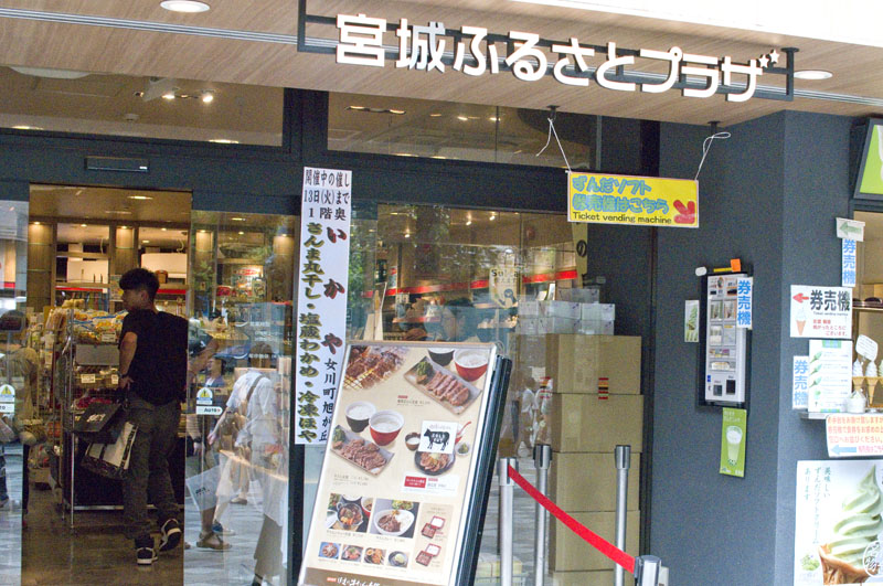 A wide selection of Miyagi-ken sake - some fifty or sixty varieties - is one of the main attractions of this Miyagi-ken prefectural antenna shop. You'll also find Sendai beef and beef tongue products, fresh fish and seafood in season, cheese and dairy products, and a couple of rice varieties called Hitomebori and Sasanishiki. Soft ice cream can be purchased from a dedicated window in front of the shop.