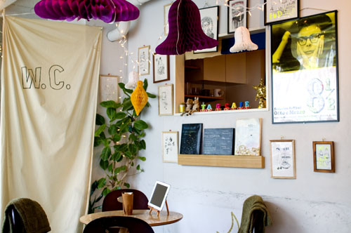Lunchtime runs until 4pm, with reasonably priced, well-prepared dishes, and there's a wide range of drinks, both caffeinated and alcoholic, to choose from. The space is decorated with random party decorations and big plastic trees, which provide a bit of privacy between tables. Unfortunately the cafe's small size means that it can get smoky at times.