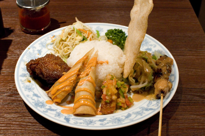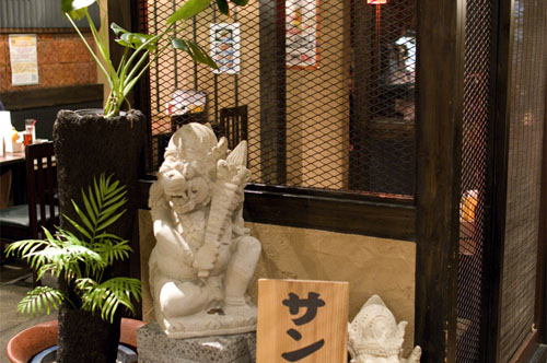 They serve very good Indonesian fare at this "small-plate izakaya," including a range of sate skewers, stews, salads and vegetable dishes. The dining area is more festive than you might expect from its hidden-away office-building setting. Lunches are served until 5pm and start at Y1000. The Y1300 special combo lunch is especially recommended.
