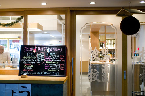 Run by a liquor retail shop, this stand-up bar offers a small selection of sake, inexpensive small plates of food, and jazz on the sound system. The attached liquor store is open from 10am.
