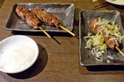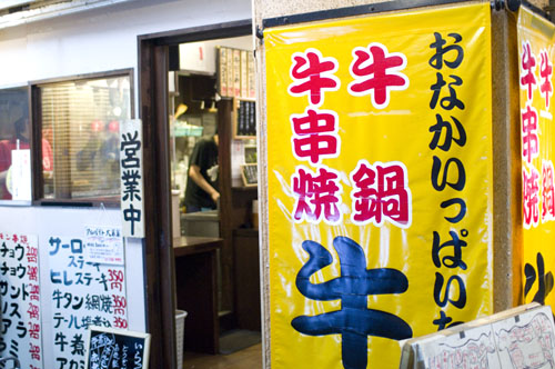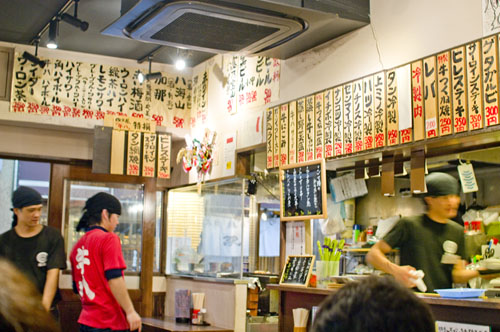 Located under the JR railroad tracks, this very casual drinking spot serves great charcoal-grilled beef on skewers, including a variety of organ meats. Surrounded by similarly inexpensive and informal shops, it makes a nice stop on a bar-hopping tour of the neighborhood. Budget around Y2000 for food and drink.