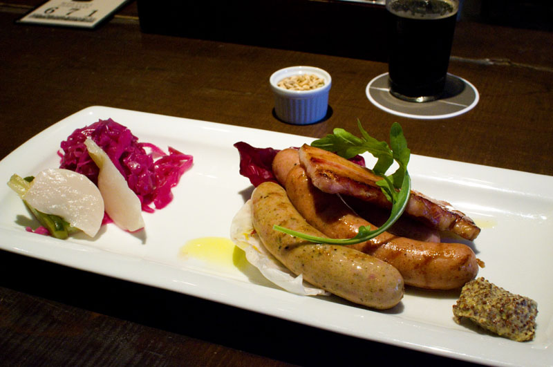 The stick-to-your-ribs food menu features items like grilled pork shoulder; sausage platter with bacon; tripe-tomato beer stew; sauteed veal liver; and spicy fried chicken wings. Many of the meat dishes are served with nice, fresh-tasting pickled vegetables. Budget around Y4000 in the evening, or Y1500 at lunchtime.