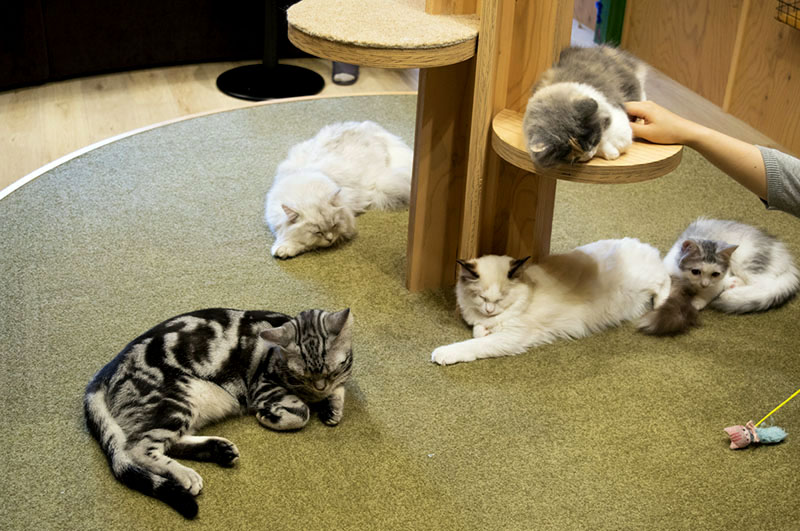 Located overlooking West Ikebukuro Gate Park, this cat cafe is a little oasis of relaxation in the heart of the city. As soon as you climb the stairs to the third floor and enter the cafe, the warm natural wood decor and cool instrumental jazz soundtrack take you far away from the grit of Ikebukuro.