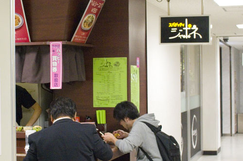 Other options include the Jalico (shrimp and meat), Ume Nori (with a plum-flavored topping), China (featuring zasai pickles), and Kimchi (with pork). Regular portions are reasonably sized, but the jumbo size (for an extra Y150) is almost comically large. Gigantic bottles of Tabasco and tubs of parmesan cheese are available if you want them.