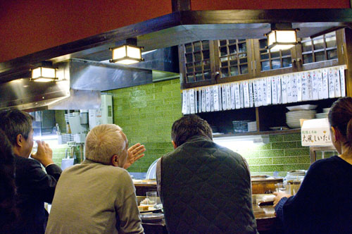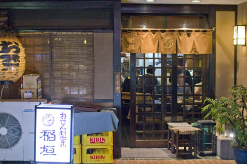 Some highlights include juicy scallops, very airy hanpen, nice plump oysters, and richly flavored Nagoya-style daikon chunks. Assorted sashimi of the day and traditional izakaya-style side dishes are available to supplement your oden if you're hungry. The sake list is quite limited, and there are a few shochu choices. Budget around Y4000 for dinner with drinks.
