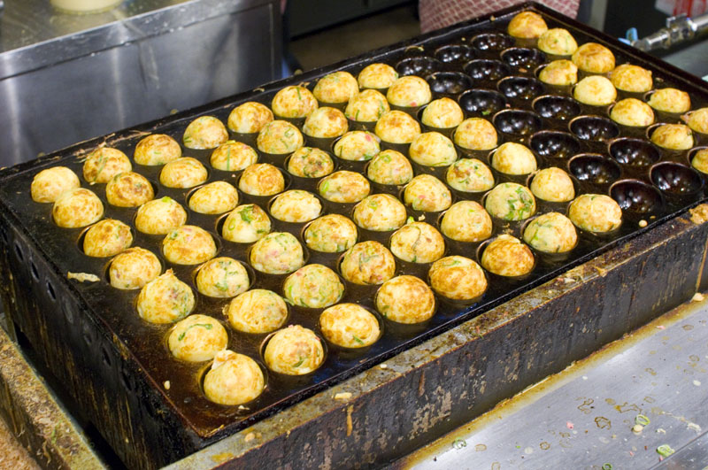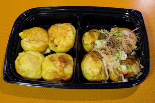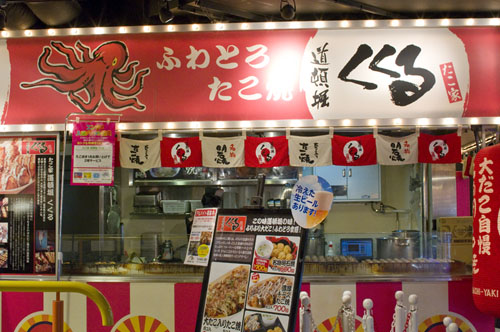 Our favorite of the shops inside the Takoyaki Museum mini-theme park, Kukuru offers three takoyaki variations - regular, cheese, and akashiyaki. The regular version has nicely balanced flavors and tasty octopus bits, while the omelette base of the akashiyaki is pleasantly runny and soft. A set of four regular and four akashiyaki is Y630, and a sampler of all three types is Y980. English menu available.