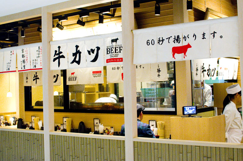 Deep-fried beef cutlet is the specialty at this branch of the Kyoto-based restaurant. Set meals are priced Y1180-1580.