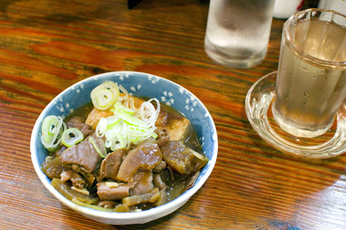 Balance your meal with excellent grilled zucchini, asparagus and other vegetables, or with the seasonal vegetable plate served bagna cauda style. The motsu nikomi (organ-meat stew) is also quite hearty and satisfying, and goes very well with the more assertive sakes on the list. The setting is a very unpretentious izakaya-style pub, built around a long counter with a few small tables in back. Budget around Y2000-2500 for food and drink.