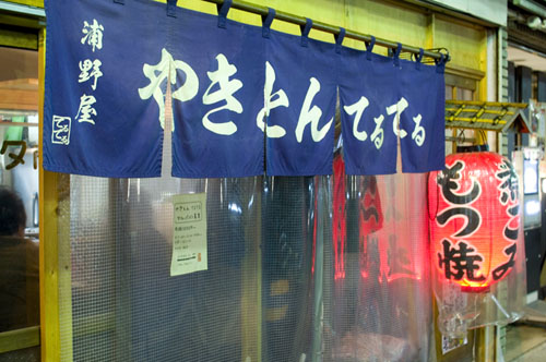The first-rate grilled pork at Teruteru is matched by a serious selection of craft sake, including many seasonal choices. Pork skewers start at just Y100, with more than a dozen different organ meats. The tsukune (minced-pork patty) is outstanding, a perfect balance of meaty flavors with a good amount of fat, and the shiro (intestines) and harami (tender diaphragm meat) are also highly recommended.