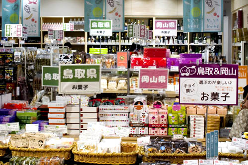 This dual-purpose prefectural antenna shop showcases the agricultural and other products of both Tottori and Okayama prefectures. You'll find the usual assortment of fresh produce, frozen seafood, and quite a bit of sake from small local producers. Upstairs on the second floor is a small cafe serving local dishes.