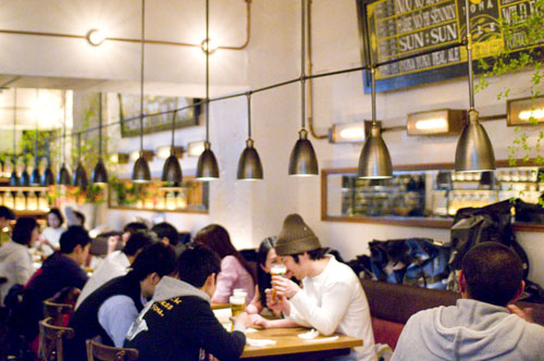 The eight regular beers in the line-up come in three sizes, while "special" beers like barley wine and hand-pumped real ale come in one size only. Same-day reservations aren't allowed, so call a day ahead of time or prepare to wait on line if they're crowded. Open all afternoon on weekends. Budget around Y3000-4500 for ample food and drink.