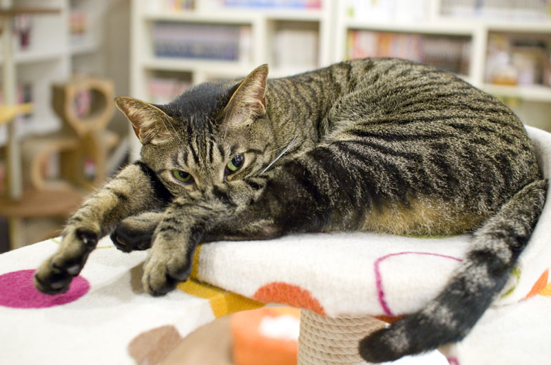 There are twenty-six feline residents - many of them rescue cats from a local shelter - at this conveniently located cafe just around the corner from Ueno station. The playroom is furnished with climbing trees, lots of empty boxes to explore, and fourteen seats for visitors. Entrance fees start at just Y350 for fifteen minutes (on weekdays), so you can check it out without a lot of risk before you commit yourself.