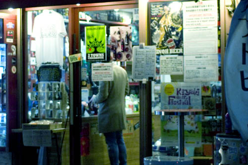 There's a small tasting corner in the front part of the shop where you can stand and drink your purchases for an extra Y100 per-bottle corkage charge. The management makes a point of explaining that this is just a tasting area, not a bar, so they discourage loud coversation and don't allow groups of more than three people.