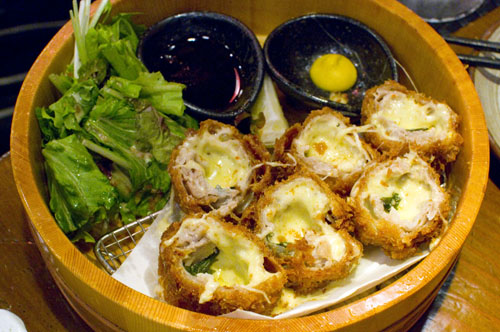 Other local specialties range from regional favorites like karashi renkon (deep-fried lotus root stuffed with pungent mustard) and spicy mentaiko potato salad to original creations like pork mille-feuille - thinly sliced morsels wrapped around a gooey cheese center and breaded to sort of resemble a pastry dish. Sara udon - seafood in ankake sauce over crispy noodles - is probably Nagasaki's most famous dish and makes a nice starchy finish to a meal here.