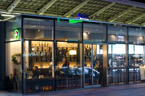 The setting - on the second floor of Tokyo Station's Granroof complex - is pleasantly urban, although parts of the cozy interior can feel a bit cramped. (Also the automatic door can be overactive, which is unfortunate in bad weather.) There's some outdoor standing room if you want some fresh air. Look for the upward-bound escalators on the east side of the station, just to the south of Daimaru department store.