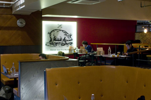 In addition to the charms of its unusual location, Bowling Cafe is quite spacious, provides free wifi, and is very close to Shibuya Station, so as well as hungry bowlers it also attracts an afternoon crowd of people working on their laptops. The food menu is more ambitious than you might expect, and our grilled pork plate (Y1200) featured excellent heirloom-breed pork from Kagoshima as well as roast Brussels sprouts and other seasonal vegetables.