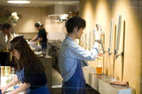 Although main-course dinner items seem to be limited to ribs, there are lots of enticing tapas-style snacks like roast cauliflower, deep-fried prawns and ratatouille - all of which are very tasty. The eight beer taps dispense a rotating selection of mostly Japanese craft beers, including at least one or two from the up-and-coming Kyoto Brewing Company. (Sometimes one of the taps is devoted to wine.) Beers come in three sizes, ranging from Y700 for a small glass to Y1200 for a pint. Order your food and drinks at the entrance counter and pay as you go.