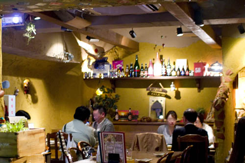 Beers come in three sizes (200ml, 350ml and 580ml) and are quite reasonably priced at Y490, Y750 and Y990 respectively. The entertaining food menu is wide in range - tandoori chicken (topped with a poached egg), Thai sausages, Vietnamese spring rolls, mini-pizzas - but generally takes a back seat to the beer. Budget around Y3500 for dinner with drinks.