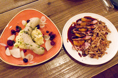The kitchen turns out exotic fare like Grilled Marmalade Spareribs in Cacao Sauce and Cheesy Spicy Lamb Lasagna. The Juicy Boudin Blanc is indeed more vivacious than your average white sausage, served with mixed berries and yuzu-infused mashed potatoes that nicely complement some of BBP's fruitier beers. The excellent Roast Wild Duck is also very northern European in style, served with roasted apples, cherry sauce, forest mushrooms and millet.