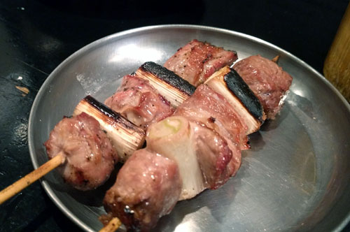 Yakiton (grilled pork on skewers) is the specialty at this budget-friendly local izakaya, along with grilled seasonal vegetables, grilled chicken and drink-friendly side dishes. At Y100 per skewer it's hard to beat Shimonya's cost performance, and sake and other drinks are also quite reasonable. The downstairs fills up quickly during peak times but there's additional seating upstairs to handle the crowds.