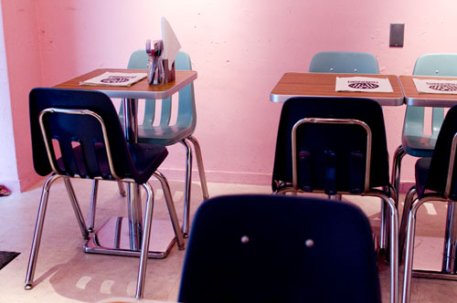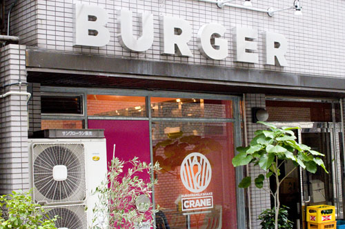 Crane's decor is tasteful modern diner style, with hot-pink walls, brushed-aluminum cabinets, white tile, colorful plastic-molded seats, and wood-patterned metal tables. The soundtrack is eclectic pop, ranging from seventies stadium rock to reggae. Burgers are priced from Y1000, with a single-patty bacon cheeseburger running Y1300.