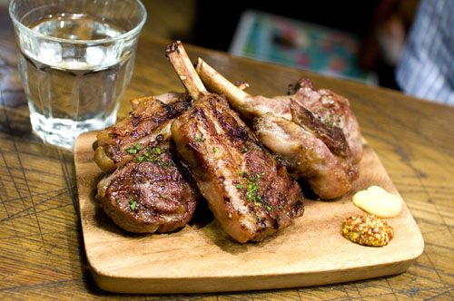 Simple meat dishes are the other strong point here, starting with a plate of six different hams and salamis. The grilled-meat platter makes a nice followup, and with ample portions of grilled beef, pork and chicken it's big enough to share among three or four people. Grilled Australian lamb chops are another highlight.