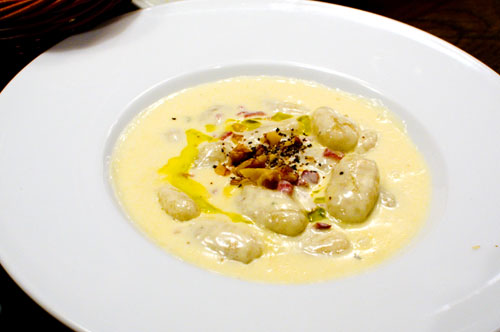Wine goes with cheese of course, and the menu offers several different assorted cheese platters. One unusual dish is the camembert fondue - basically just a whole grilled camembert served with roast vegetables. The four-cheese gnocchi is an excellent delivery vehicle for good cheeses, and it's put together with a perfect balance of pecorino, blue and wash cheeses.