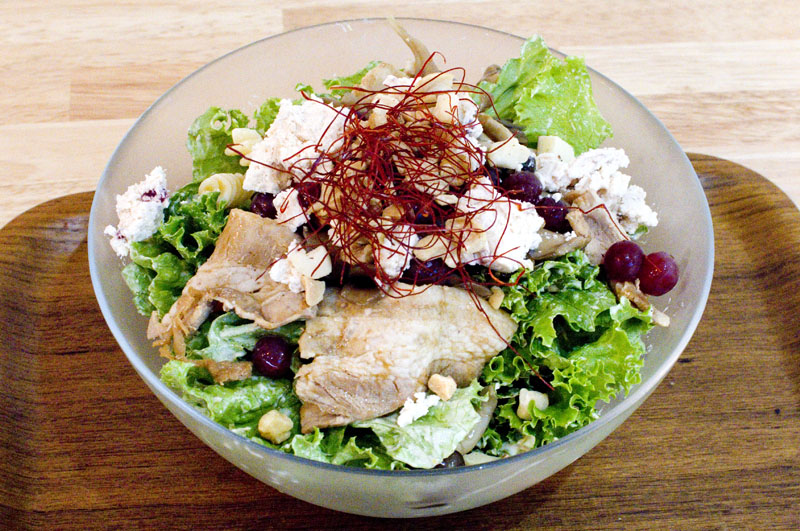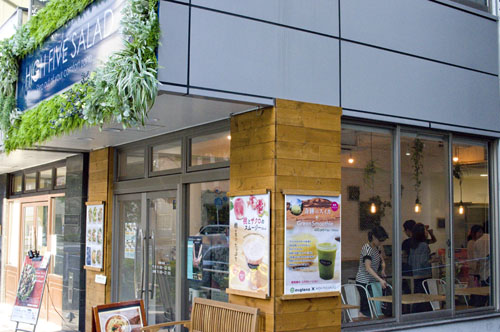 Various dressings and toppings liven things up, and you can add squiggly pasta to your salad for free. There are eight salads in all, priced Y880-1100. Drinks include smoothies and iced coffee.