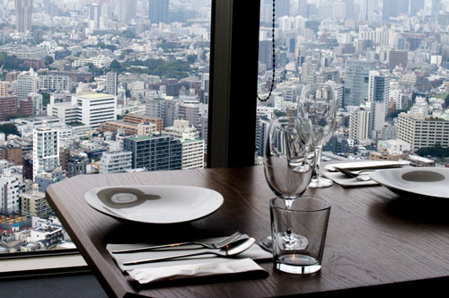 Prix-fixe dinner menus are Y5500, or you can order a la carte. Prix-fixe lunches are priced Y1300-4800. The restaurant is located on the 39th floor of Yebisu Garden Tower, so there's a nice view at night.