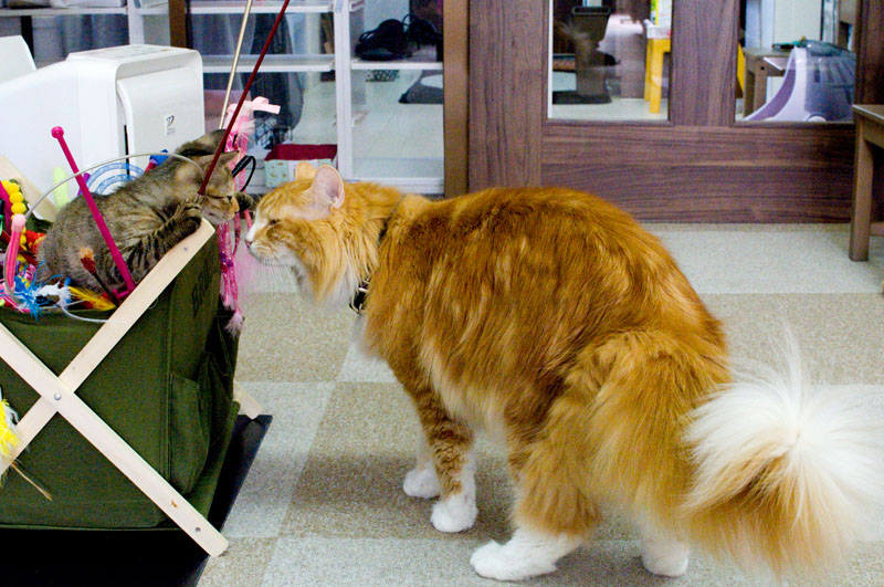 When we last visited, the playroom here was full of tiny kittens play-fighting and chasing each other around, making for a very energetic cat-cafe experience. There are many exotic and beautiful breeds among the seventeen resident cats, some of which are rather massive in size, making for interesting photographic opportunities.