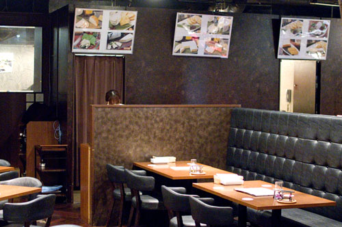 The dining room is spacious, with an extremely muted color scheme, and lively jazz plays on the sound system. Service is friendly and efficient, although a couple of dishes we ordered were unavailable. Budget around Y3500-4000 for dinner with drinks.