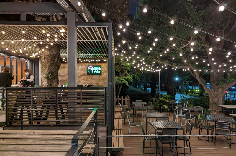 In addition to burgers and hot dogs, the popular New York-based chain is known for their frozen-custard "concrete" desserts and eponymous shakes. This branch features ample terrace seating overlooking the tree-lined Meiji Jingu Gaien promenade, a pleasant place to enjoy a post-burger glass of wine or beer. They're also furnished with a pingpong table in case you're feeling athletic.