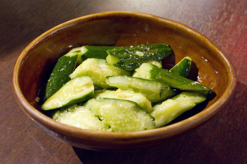 The kitchen also gets high marks for the simple but well-executed side dishes such as their deep-fried lotus-root chips and the pleasantly crunchy, rather garlicky pickled cucumbers. Sweet-potato ice cream and chocolate fondant are among the dessert options, and drinks include fresh-squeezed yuzu cocktails and soft drinks along with a few seasonal sake and shochu.