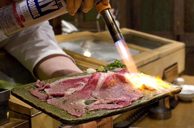 Nikuzushi is a real treat for meat lovers - you can enjoy tasty, bite-size morsels of various cuts of beef, pork, duck, chicken, venison, horse and other meats, served as nigiri-zushi over dabs of vinegared rice. Assortment platters are a good way to compare different cuts of meat and preparation styles - an entertaining alternative to simply plowing through a big steak.