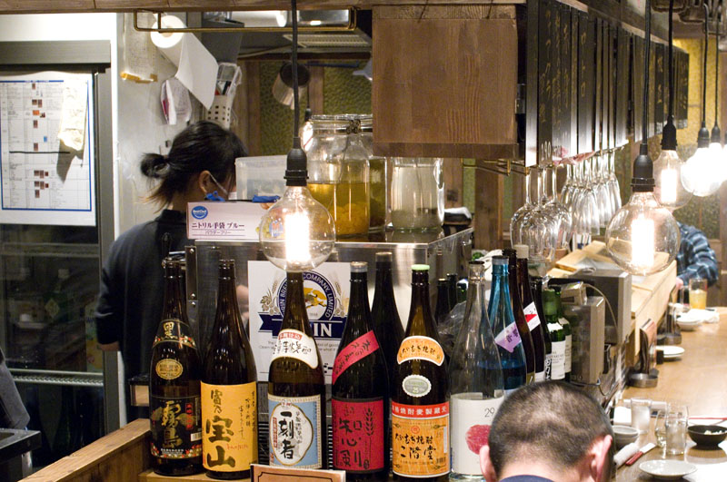 The dining room looks like a typical after-work izakaya in style, with most seating at the counter, plus a handful of small tables with stools in back. Budget around Y3000-4000 for ample food and drink at dinnertime. In case the Monzennakacho location is inconvenient, Nikuzushi has several other locations around town.