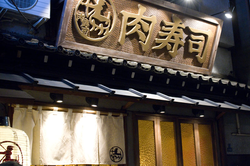 Most meaty toppings are cooked, or at least lightly seared, but they also serve sashimi-style raw chicken and horsemeat. The selection of sushi by the piece features tempting items like roast beef, beef tongue, beef with sea urchin, duck breast, foie gras, avocado-chicken salad and sukiyaki. Various assorted platters are also nicely put together, but try to order at least one platter for each person at the table so you don't have to fight over who gets which piece.