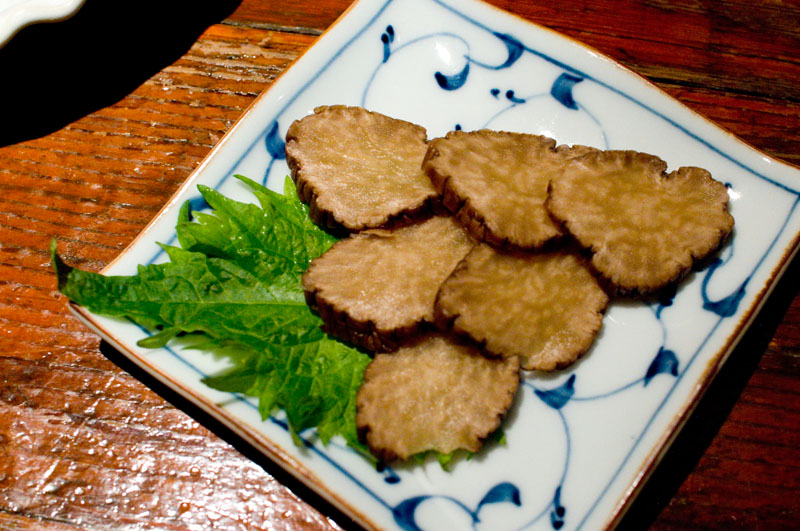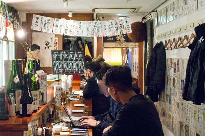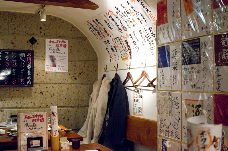 The setting is comfortable and unpretentious, with a bit of an "under-the-tracks" ambience thanks to the unusual arched ceiling. The staff are helpful with sake recommendations, and the sake menu descriptions are fairly detailed (although only in Japanese). Budget around Y4000-5000 for ample food and drink. Kamozo is a sister shop of the well-known Nozaki izakaya in Shimbashi.